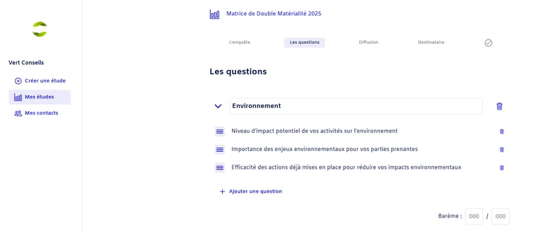 MVP Saas BtoB d'évaluation de double matérialité (RSE)